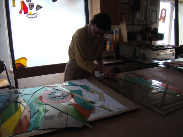 Zdjęcie z wystawy "Projektów witraży w Bazylice"
